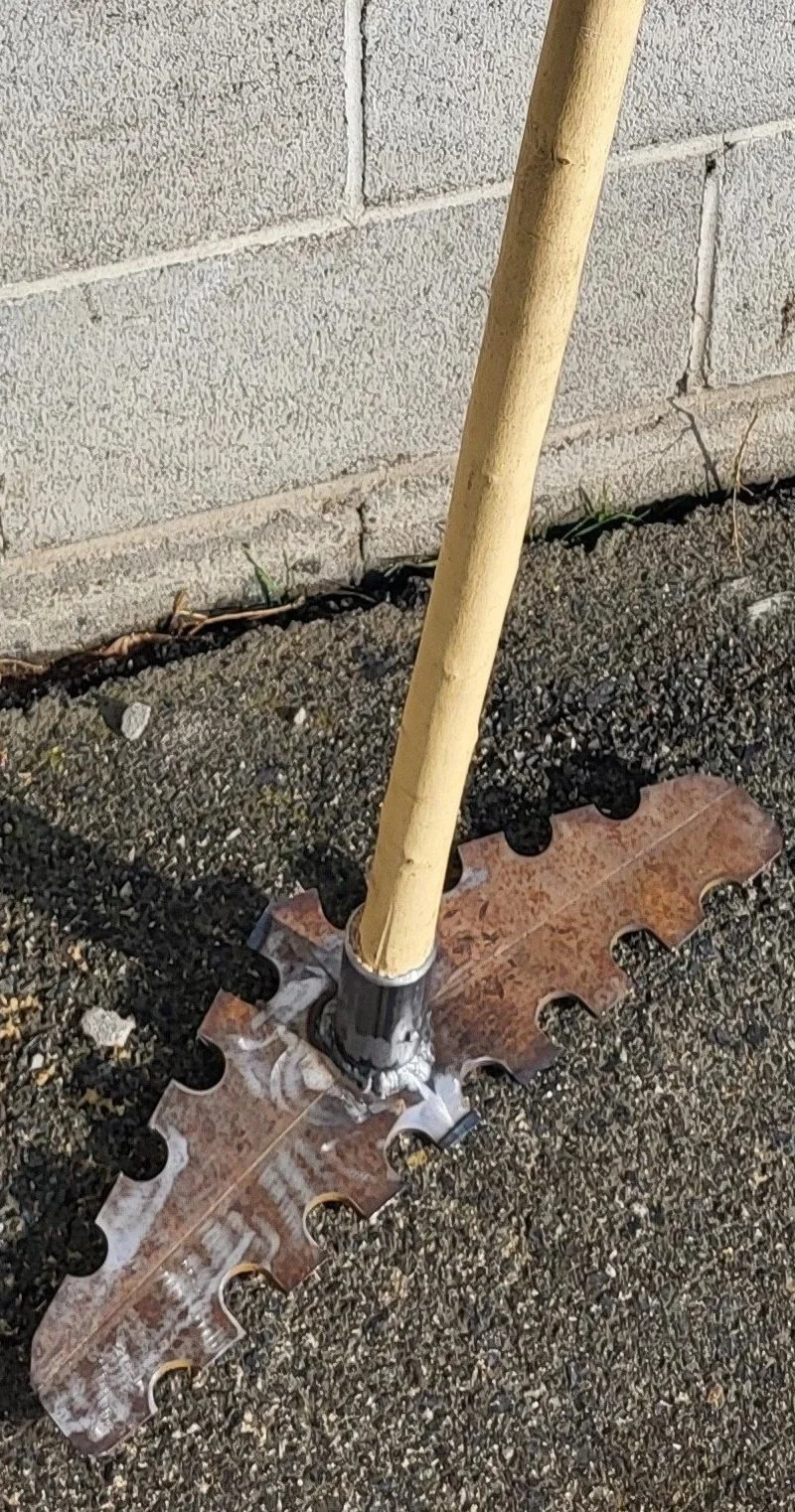Depending on the dimensions of the steel plate, the size of the heads could change per batch up to 30% to reduce waste. This gives us an opportunity to offer multiple sizes of the HEW - in both .19” and .25” steel plate for even more possible combinations. The 1/4” x 18” rake heads - before beveling and without a collar - are weighing in at 4 lb 4 oz. The martial arts stick handled tool with this head is weighing in at 6 lb 7 oz.